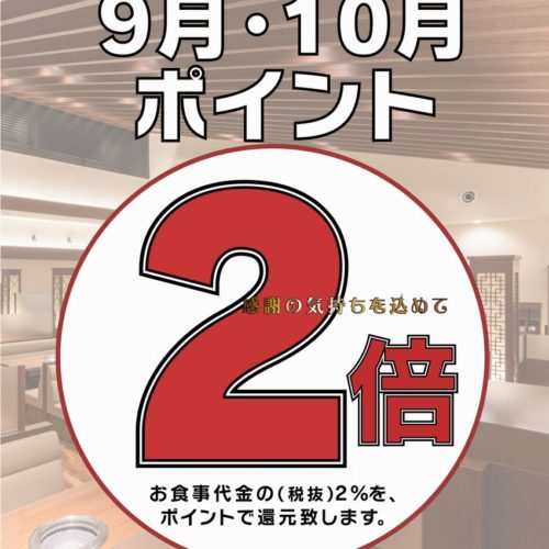 【9月・10月開催】全店ポイント2倍キャンペーンのお知らせ【彩炉】