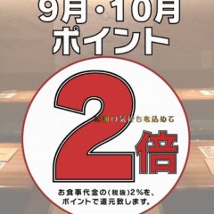 【9月・10月開催】全店ポイント2倍キャンペーンのお知らせ【彩炉】
